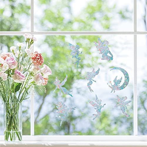 GORGECRAFT 16PCS Angelo Finestra Aderisce Fata Anti Collisione Arcobaleno Adesivi per Finestra per Uccelli Strike Decalcomanie Pellicola Prismatica Prismatica Non Adesiva per Porte Scorrevoli