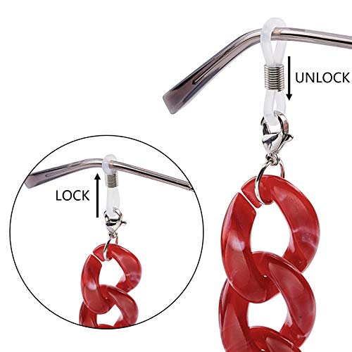 GORGECRAFT Catena per Occhiali in Acrilico, Collana per Occhiali con 304 Cordino per Occhiali da Donna in Acciaio Inossidabile con Moschettoni, Rosso
