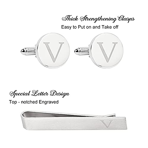 GORGECRAFT Gemelli Classici per Uomo Fermacravatta e Set di Gemelli per Uomo Gemelli con Lettera Iniziale Dell'Alfabeto per Matrimonio Formale d'Affari, V