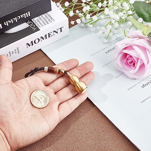 GORGECRAFT Feng Shui Ottone Wu Lou Zucca Portachiavi Cinese Hulu Portachiavi Ottone Dorato Calabash con Perline Bodhi Decorazione Auto Pendente Borsa Medaglione Portachiavi Benedizione Regalo