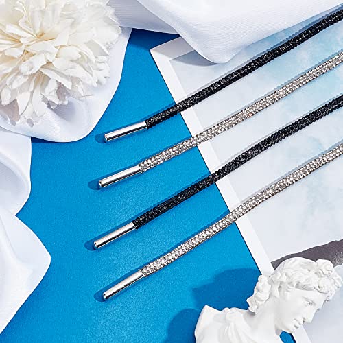 GORGECRAFT 4 Pezzi Lacci per Scarpe con Strass Cristallo Nero Bianco Glitter Corda Lucida Cordoncino di Ricambio Cordoni di Ricambio Bling Catena Rotonda Corda del Tubo Trim per Sneakers Scarpe