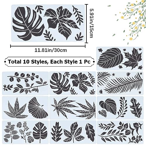 GORGECRAFT 10 Stili Stencil Foglia Stencil Pianta Riutilizzabile Modelli Disegno Plastica Felce Palma Tartaruga Foglie Tropicali Motivo Artigianato per Dipingere su Pareti Mobili In Legno Tela