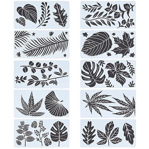 10 stencil per pittura a 10 stili: vieni con 10 stili di stencil a foglia, ogni stile ha 1 pezzo e molti modelli di foglie diversi, 10 pz in totale, quantità sufficiente e modelli ricchi per soddisfare le diverse esigenze di pittura.