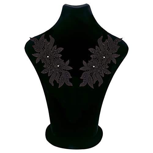 GORGECRAFT 1 Paio di Toppe in Pizzo Ricamate Floreali 3D con Perline di Fiori con Scollo A Perla Imitazione Pizzo per Artigianato di Cucito Fai-da-Te Abbellimenti per Abiti da Festa di Nozze, Nero