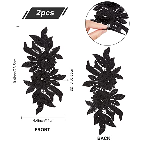 1 PAIA DI APPLICAZIONI IN PIZZO: Viene fornito con 1 paia di toppe di perline in pizzo ricamate floreali nere, ogni dimensione circa 14.56x6.69x0.22 pollice/ 370x170x5.5 mm, per il cucito fai da te