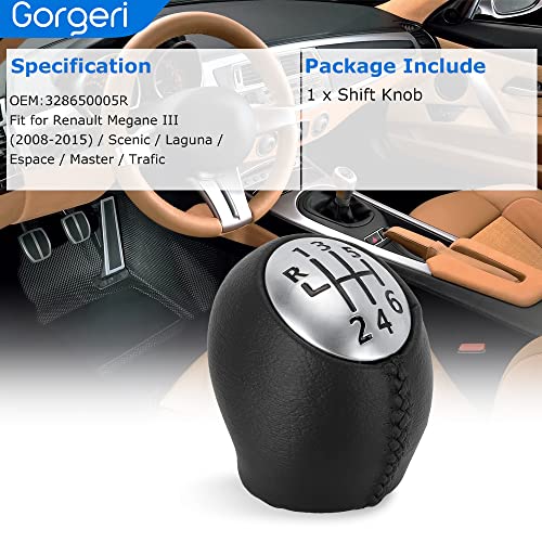 Gorgeri Sfera pomello cambio per auto, 328650005R Pomello cambio 6 marce tondo Sostituzione veicolo adatto per Megane III (nero)//pomo megane coupe iii