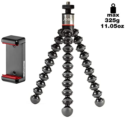 Joby gorillapod 325, mini treppiede flessibile con testa a sfera integrata per fotocamere compatte e 360° & manfrotto mclamp - attacco universale per smartphone, compatto, pieghevole