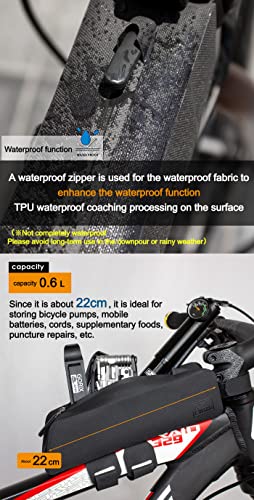 [Dettagli del prodotto]: 1 borsa tubo superiore, 3 cinghie in velcro [Materiale]: poliestere 600D, impermeabilizzazione TPU [Dimensioni]: 22 cm x 6 cm x 5 cm [Capacità massima]: circa 0,6 L / rivestimento impermeabile TPU sulla superficie/tessuto ad alto livello impermeabile IPX4 / Utilizzare cerniera impermeabile [Colore]: Nero