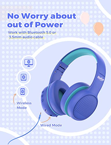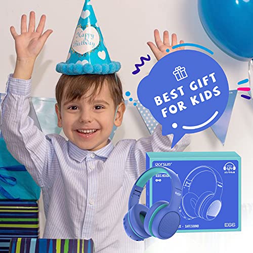 Gorsun Bluetooth cuffie per bambini, cuffie bambini pieghevoli sopra l'orecchio volume sicuro 85/94dB, cuffie per bambini con microfono per scuola/tablet, cellulari, PC, TV (blu)