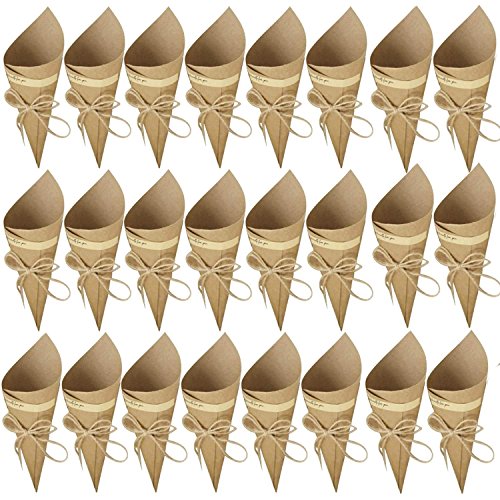 Gosear 100 pezzi Retro Kraft carta Cones Bouquet Candy Cioccolato Scatole di controllo per matrimonio party confezione regalo con nastro adesivo di canapa