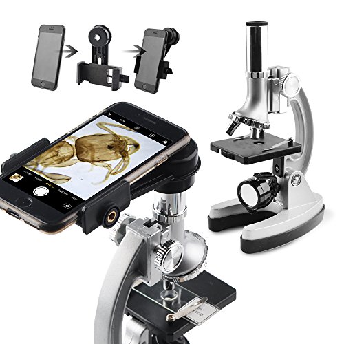 Gosky Kids set microscopio ingrandimenti con braccio e base in metallo, 300 x 600 x 1200 x, include 70PCS + set di accessori e pratico contenitore case- con adattatore per smartphone