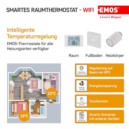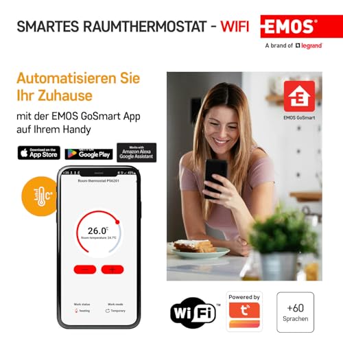 EMOS GoSmart - Termostato per ambiente WiFi con app, termostato intelligente programmabile, compatibile con Tuya, Alexa, Google Assistant, differenziale regolabile, 138 x 88 x 33 mm