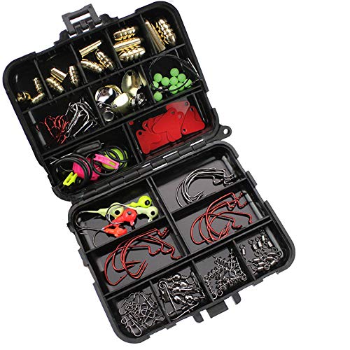 GossipBoy Kit di Esche Artificiali di Pesca Set di 128 accessori per la pesca alla carpa e al pesce gatto, per pesca d'acqua dolce e salata, con ganci, girelle, anellini, andulanti, sfere lumino