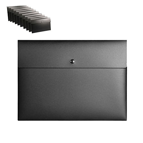 GossipBoy, 1 set da 10 pezzi di buste in plastica polipropilene, impermeabili e antistrappo, formato A4, da utilizzare come cartelline o contenitori portadocumenti, per conservare fogli, con bottone a pressione Nero