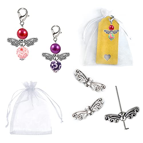 Gotetiso Angelo di Perle Set di 30 Angelo Custode Ciondolo Portachiavi Angelo Set Portachiavi Angelo Bomboniere Ali Angelo Angelo Ali Perline Metallo Angeli Custodi Fai da Te con Pinze