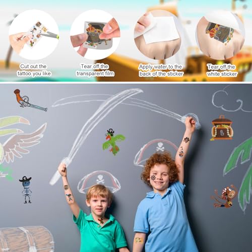 Set perfetto: la superficie della moneta d'oro ha due diversi motivi: il classico simbolo pirata e il forziere del tesoro. Le gemme sono disponibili in diversi colori e sono perfette per decorare scrigni del tesoro. L'adesivo del tatuaggio adotta un design in stile cartone animato, divertente e carino