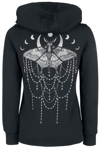 Gothicana by EMP Donna Giacca Nera con Cappuccio con Stampa sulla Schiena e sul Cappuccio M