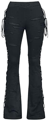 Gothicana by EMP Donna Leggings Neri con Risvolto e Allacciatura L