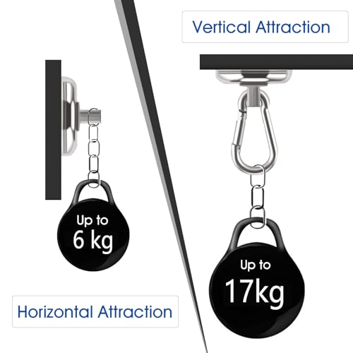 ▶ 【Forte capacità portante】 Il ganci magnetici può ruotare di 360° e oscillare di 180°. Prove di trazione professionali dimostrano che in un ambiente idoneo può sopportare una trazione verticale massima di 17 kg e una trazione orizzontale massima di 6 kg. Nota che l'attrazione dipende dal materiale a cui ti stai connettendo.