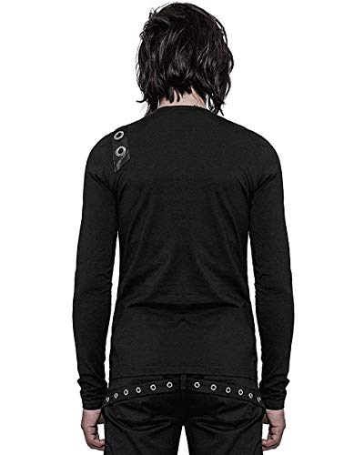 Punk Rave Uomo Gotico Punk Maglia Nera Manica Lunga Set Costrittivi Cinturino Dieselpunk Camicia