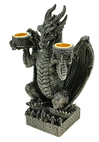 2963 gotico portacandele Drago per 2 candele 21 cm