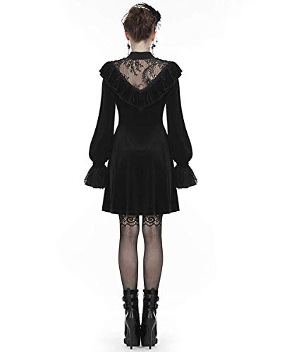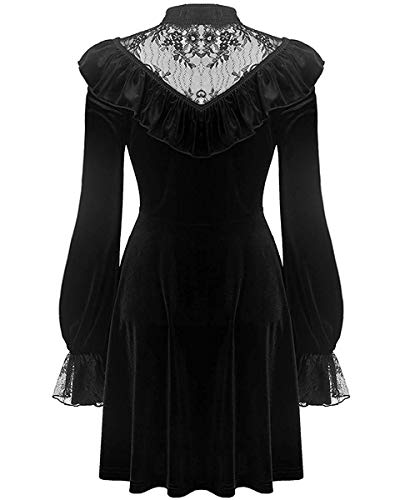 Dark In Love Gotico Strega Mini Abito Velluto Nero Pizzo Occulto Manica Lunga Vampiro - Nero, L/XL - UK Womens Size 12-14