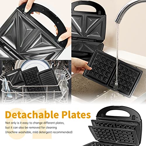 Gotoll Tostiera,Tostapane/Waffles Piastra 750W, Sandwich Maker 3 in 1 Piastre Antiaderent