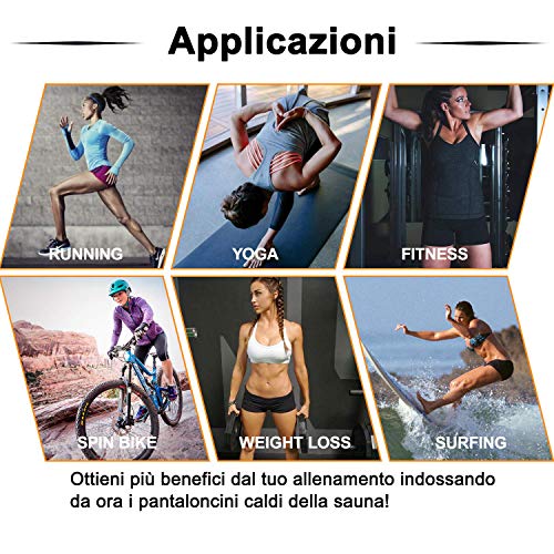 CONSENTI UN MOVIMENTO A TUTTA GAMMA - Grazie al leggero tessuto elastico in neoprene, puoi indossare questi pantaloncini dimagranti ad alte prestazioni per una comoda compressione aderente intorno alle cosce. E i pantaloni della tuta da sauna caldi sono dotati di fascia elastica in vita ampia che offre un trimmer per il controllo degli addominali inferiore senza arrotolarsi durante qualsiasi esercizio di allenamento.