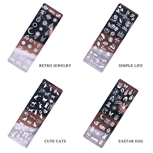 Semplice da usare: facile da timbrare e trasferire, ogni lastra ha una pellicola protettiva blu che può proteggerle dai graffi, puoi usare lo smalto e altri strumenti relativi (fai riferimento all'immagine per passaggi specifici) per timbrare e ottenere modelli carini