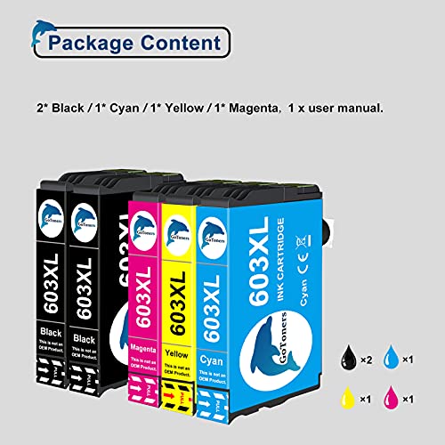 GoToners 603XL Cartucce Compatibili per Epson 603 XL Multipack per Expression Home XP-2100 XP-2105 XP-3100 XP-4100 Workforce WF-2810 WF-2830 WF-2850 (2 Nero, 1 Ciano, 1 Magenta, 1 Giallo)