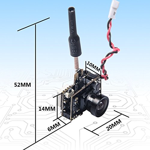 Gotoqomo 5,8G 40CH FPV Telecamera AIO 25/50/200mW Commutabile di Potenza FPV Video Trasmettitore con Micro 600TVL Telecamera e Antenna Dipolo in Ottone