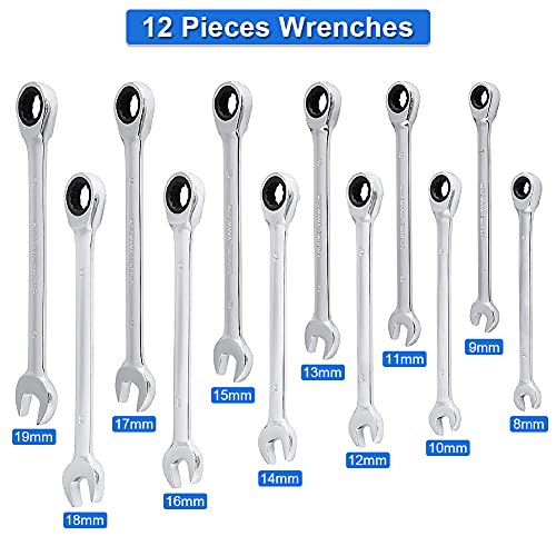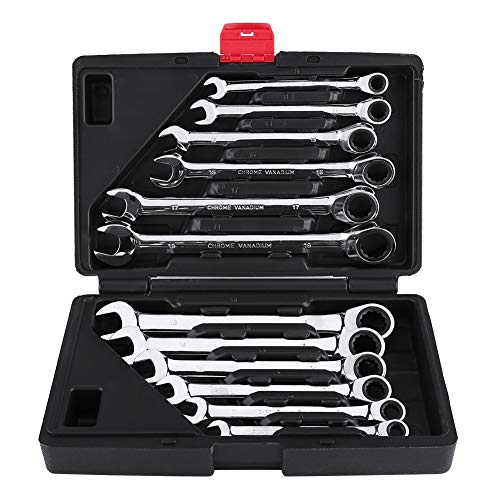 GOTOTOP Chiave a cricchetto Set 8-19mm, 12 Pezzi Testa Fissa Pezzi Metrica Combinazione Chiave con cassa di attrezzo per la riparazione di auto