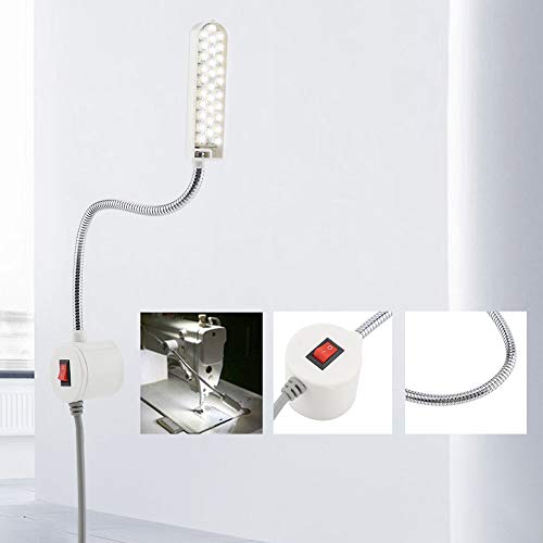 GOTOTOP Lampadina per Macchina da Cucire Lampada 30 LED, Luce Diurna 6000K con Base Magnetica e Collo Flessibile per Macchina da Cucire, Trapani a Colonna, scrivanie, lampade per torni(Spina UE 220V)