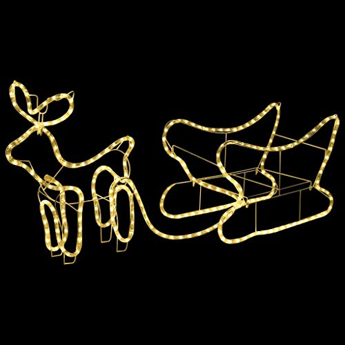 GOTOTOP Renne e Slitta Decorazione Natalizia per Esterni 252 LED Renna: 22,5 x 46 x 47 cm Slitta: 24 x 48,5 x 35 cm