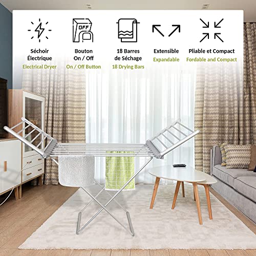 GOTOTOP Stendibiancheria riscaldante, asciugabiancheria elettrico con 45-55 ℃ appendiabiti per biancheria con struttura in ossido di alluminio 142 x 90 x 43 cm (EU 220 V)