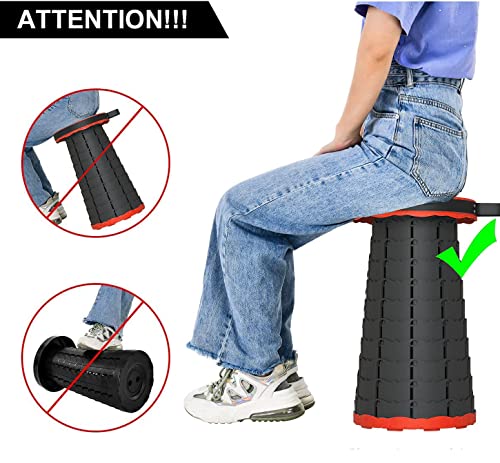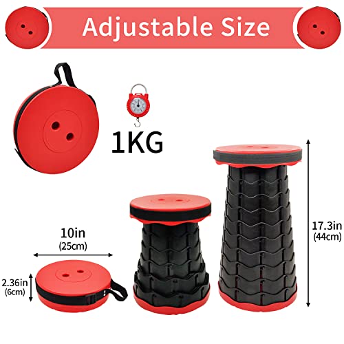 Goujfol Sgabello Pieghevole Portatile, Sgabello Telescopico Plastica Regolabile in Altezza, Sedia Richiudibile per Esterni, Pesca, Campeggio, Escursione, Feste, Viaggi (Rosso)