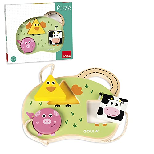 Puzzle in legno a tre pezzi con animali da fattoria a forma geometrica