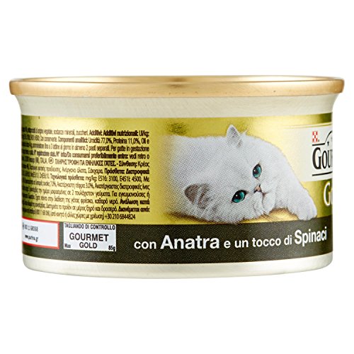 Gourmet Gold Gatto Mousse con Anatra e un Tocco di Spinaci, 85 g - Confezione da 24 pezzi