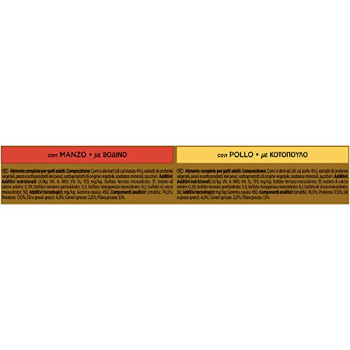 Gourmet Gold Tortini Gatto con Manzo, con Pollo, 4 x 85 g - Confezione da 12 pezzi