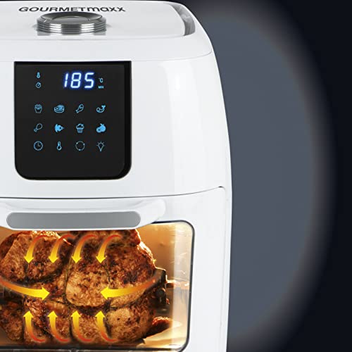 GOURMETmaxx Digital XXL Hot Air Deep Fryer 9 litri | Frittura senza grassi, friggitrice, forno e girarrosto in uno | Incluso girarrosto per pollo e shish kebab [1800 watt/bianco]