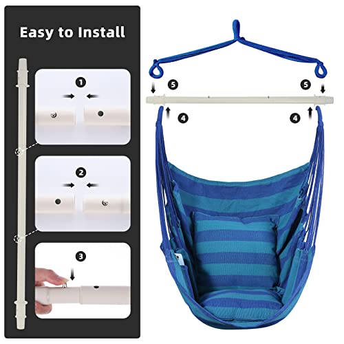 Goutime Sedia altalena Sedia Grande amaca in Cotone Morbido con Due Cuscini Cuscino con Borsa Interno/Esterno/Camera Terrazza Giardino Balcone, 330 LB (Strisci Blu)