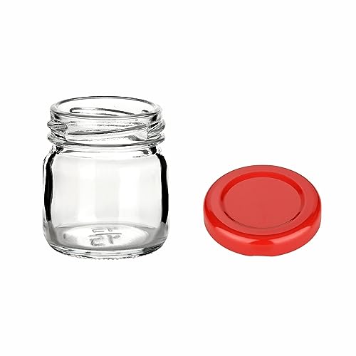 Gouveo Set di 24 vasetti da 40 ml con coperchio a vite rosso, mini barattoli con tappo a vite TO43 - vasetti per marmellate, conserve, spezie, barattoli per conserve