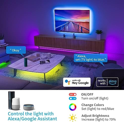 Controllo Vocale con Alexa e Google Assistant: Si può uttilizzare i comandi vocali semplici per accendere e spegnere la striscia LED intelligente e impostare i colori per renderli più chiari a mani libere.
