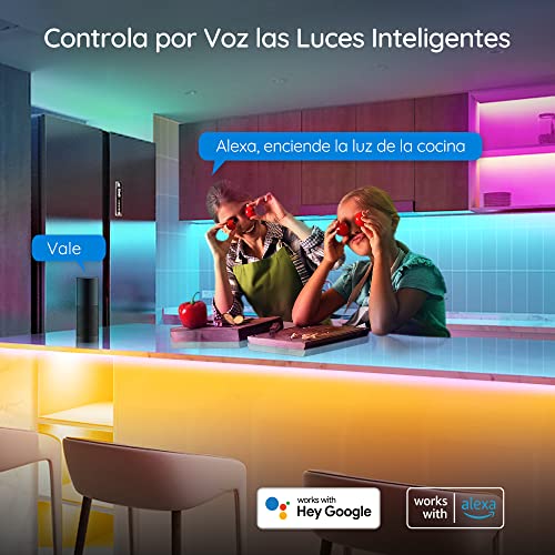 Comodo controllo vocale: Usa Alexa o l'Assistente Google per controllare facilmente le luci. Accendi / spegni, regola la luminosità o cambia i colori per creare l'atmosfera necessaria per la routine mattutina, le feste o le serate di cinema. (Nota: supporta solo WiFi a 2,4 GHz)