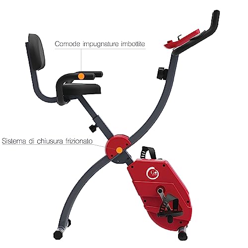 GOVITA - Cyclette pieghevole con schienale,cyclette da camera, misurazione delle pulsazioni, 8 programmi di allenamento,resistenza magnetica con volano da 3 Kg, silenzioso compatta pieghevole
