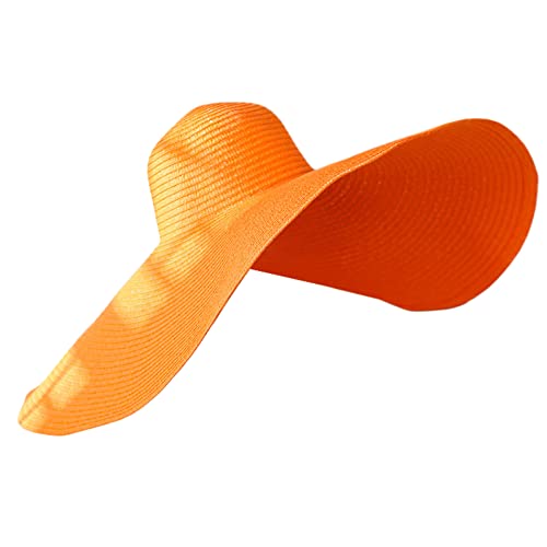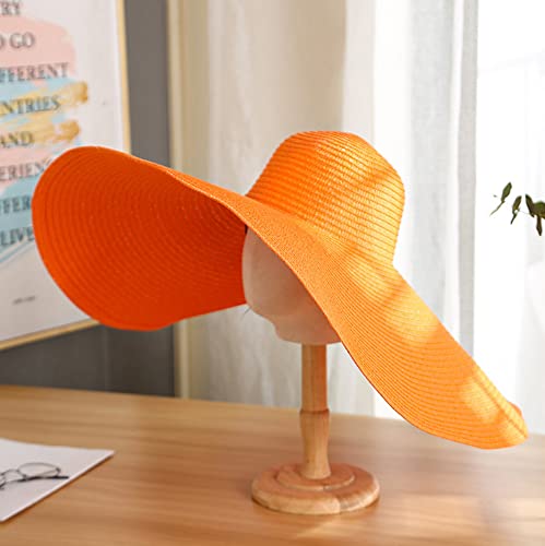 GOWEGB Cappello pieghevole da spiaggia a tesa larga per le donne grande cappello di paglia UV UPF 50+ cappello da spiaggia floppy cappello di protezione solare, Arancione, Taglia unica