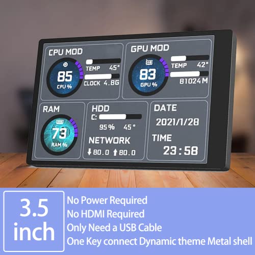 IPS da 3,5 pollici: l'immagine è chiara e può essere posizionata all'interno o all'esterno della custodia. Non solo è possibile visualizzare CPU, GPU, utilizzo della RAM e temperatura, ma anche velocità della rete, data, ora, volume e previsioni del tempo.