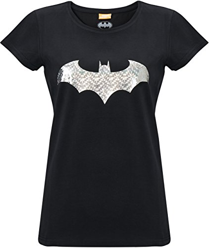 GoZoo Batman T-Shirt Donna Bat Foil Reflex 100% Cotone Nero