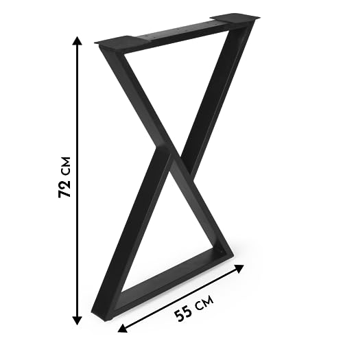 Gozos Gambe da Tavolo Triangolari in Metallo Nero | Tavolo da pranzo o tavolo da conferenza fai da te, tavolo da giardino, stabile, solido | piedini per mobili di facile montaggio | H55 x L72 x L6 cm