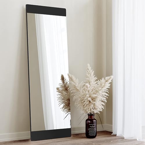 Gozos Specchio Moderno Industriale Nobel Rettangolare, Verticale o Orizzontale Appendiabiti da Parete Specchio con Base in Legno e Materiale di Montaggio Incluso - Nero | 40 x 115 x 2,2 cm